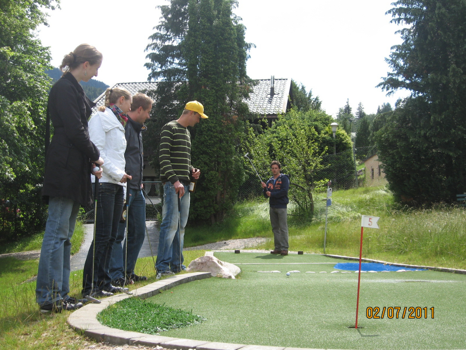 Was unterscheidet diese Anlage von einem Minigolfplatz? Ganz einfach: Es sind die abwechslungsreichen Spielbahnen, die viel mehr Spielwitz und Konzentration erfordern. Hier ist nichts genormt, Hindernisse aus Sand oder Holz erschweren das Einlochen.