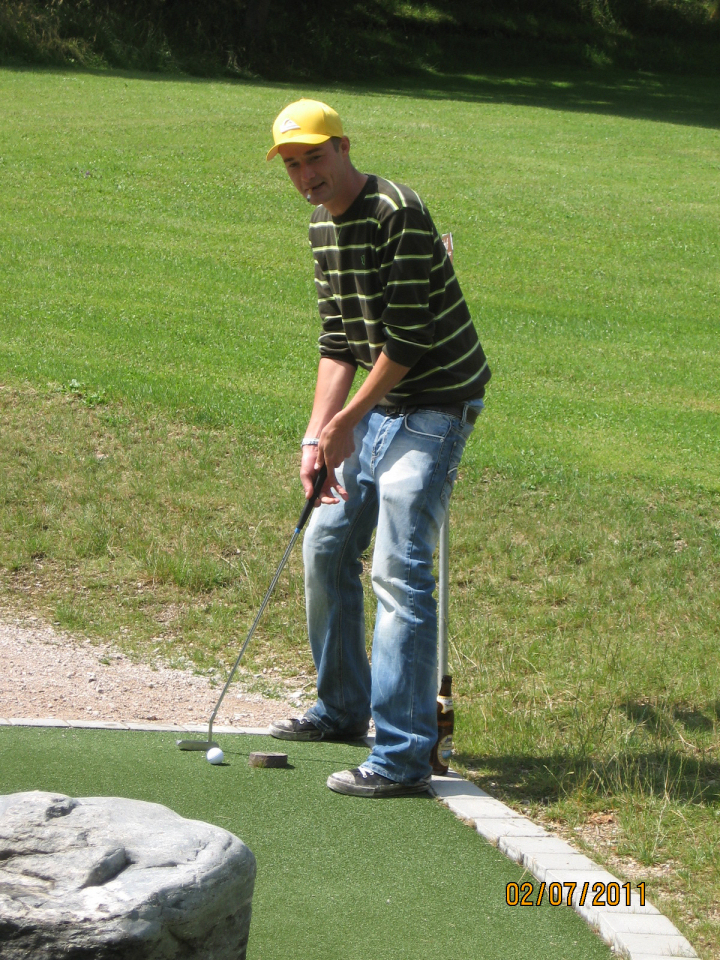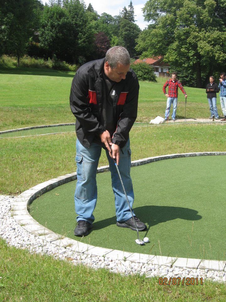 Was unterscheidet diese Anlage von einem Minigolfplatz? Ganz einfach: Es sind die abwechslungsreichen Spielbahnen, die viel mehr Spielwitz und Konzentration erfordern. Hier ist nichts genormt, Hindernisse aus Sand oder Holz erschweren das Einlochen.