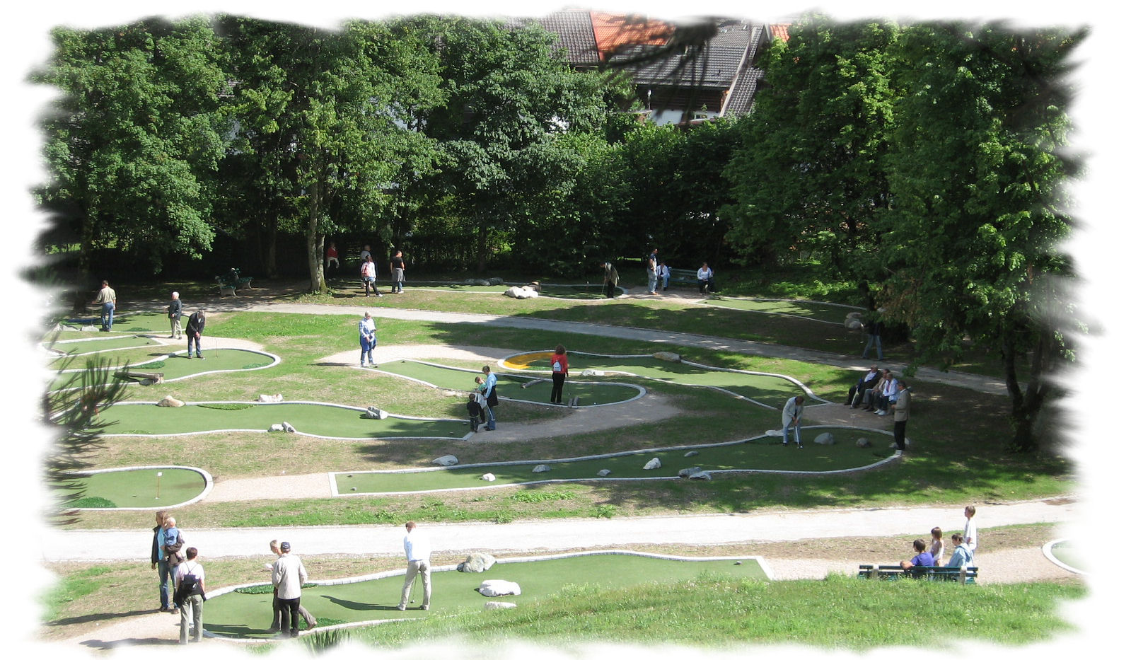 Was unterscheidet diese Anlage von einem Minigolfplatz? Ganz einfach: Es sind die abwechslungsreichen Spielbahnen, die viel mehr Spielwitz und Konzentration erfordern. Hier ist nichts genormt, Hindernisse aus Sand oder Holz erschweren das Einlochen.
