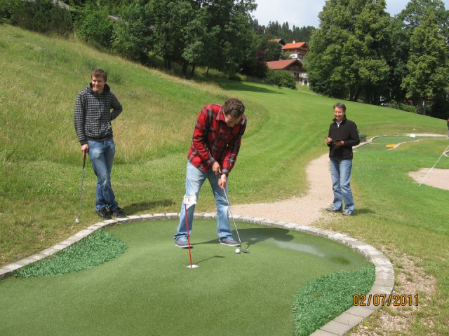 Was unterscheidet diese Anlage von einem Minigolfplatz? Ganz einfach: Es sind die abwechslungsreichen Spielbahnen, die viel mehr Spielwitz und Konzentration erfordern. Hier ist nichts genormt, Hindernisse aus Sand oder Holz erschweren das Einlochen.